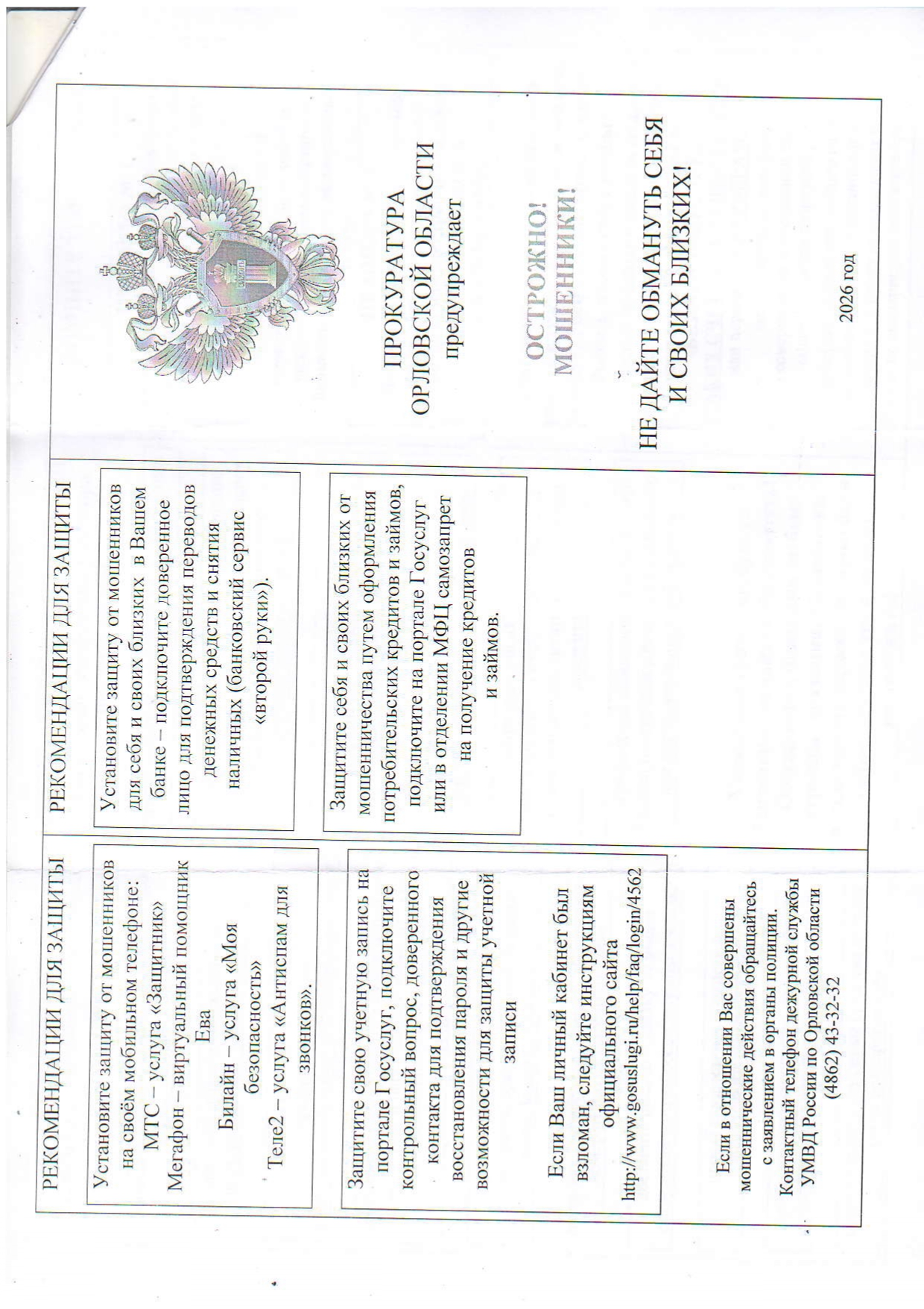 Прокуратура Орловской области предупреждает: ОСТОРОЖНО! МОШЕННИКИ!
