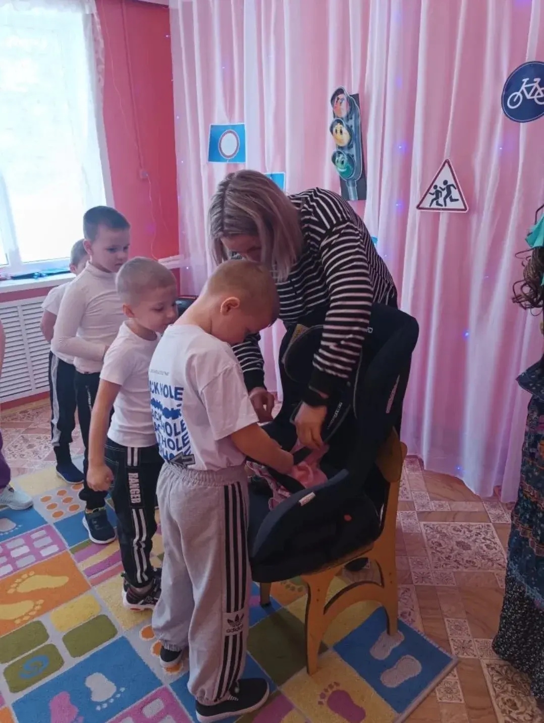 18 февраля в нашем детском саду прошло профилактическое мероприятие под лозунгом "Не страшны опасности в кресле безопасности" с участием сотрудника Госавтоинспекции Бахтиной Натальи Николаевны.